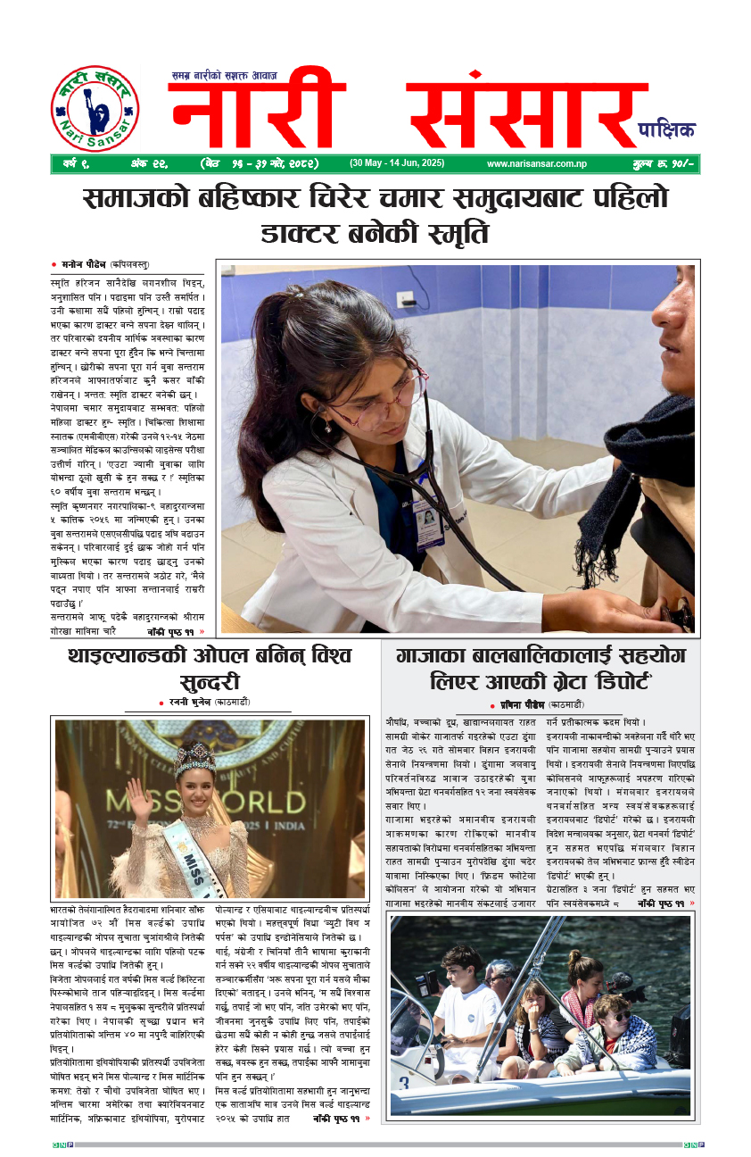 कृषी आलेख कभर स्टोरी सम्पादकीय स्वास्थ्य भान्सा जीवनशैली विचार राजनीति समाज खेलकुद